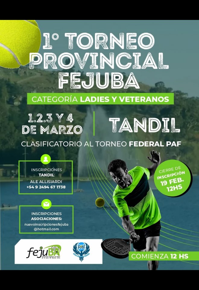 »» Evento: 1er PROVINCIAL LADIES y VETERANOS - FEJUBA 2025 »» Localidad: Tandil »» Fechas: 01/03/2025 al 04/03/2025
