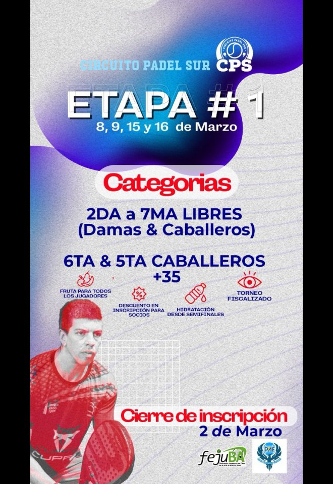 »» Evento: CIRCUITO PADEL SUR - CPS - ETAPA 1 »» Localidad: El Jagüel | Ezeiza | Luis Guillon »» Fechas: 08/03/2025 al 16/03/2025