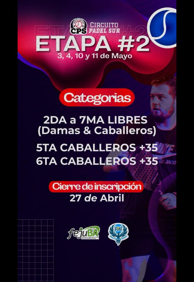 »» Evento: CIRCUITO PADEL SUR - CPS - ETAPA 2 »» Localidad: El Jagüel | Esteban Echeverría | Ezeiza | Luis Guillon »» Fechas: 03/05/2025 al 11/05/2025