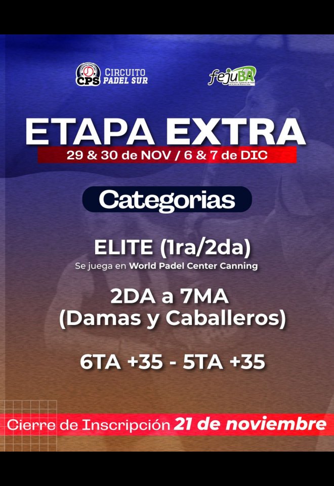 »» Evento: CPS - 2025 - ETAPA EXTRA - »» Localidad: 9 de Abril | Canning | El Jagüel | Esteban Echeverría | Ezeiza | Luis Guillon | Monte Grande »» Fechas: 29/11/2025 al 07/12/2025