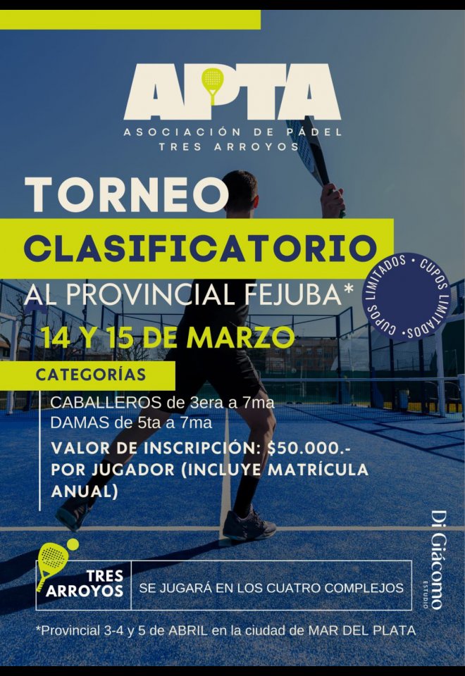 »» Evento: TORNEO CLASIFICATORIO 2026 - APTA - TRES ARROYOS - »» Localidad: Tres Arroyos »» Fechas: 13/03/2026 al 15/03/2026